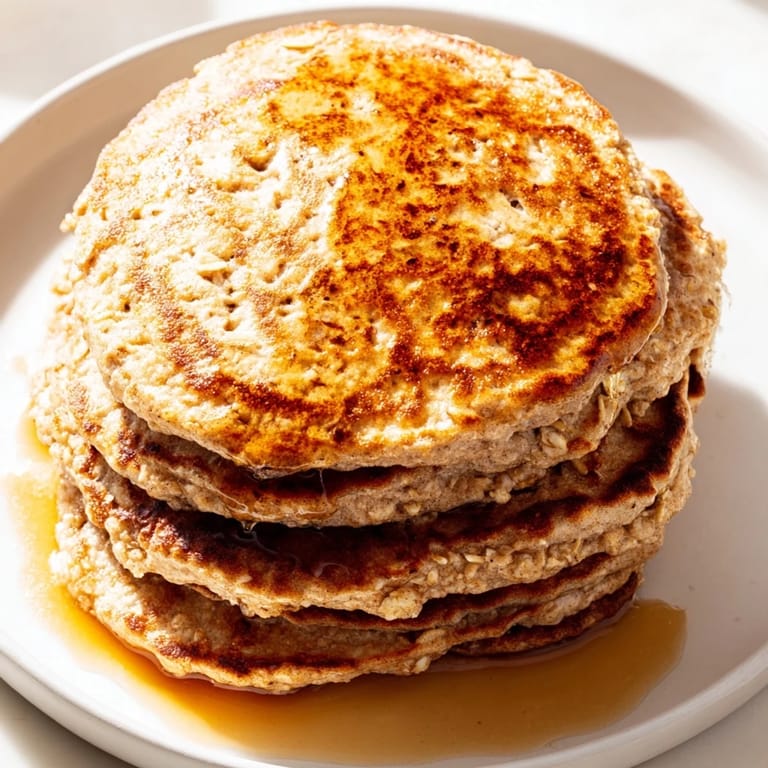 Pin it There's something almost meditative about making these pancakes on a Saturday morning when time moves slower. I discovered this recipe by accident one week when my kitchen was conspicuously empty—no eggs, no milk, nothing but a couple of overripe bananas sitting on the counter and a container of oats. What emerged from that blender was unexpectedly fluffy, naturally sweet, and so simple that I've been making them ever since whenever I need breakfast without fuss. The banana does all the binding work, the oats add substance, and somehow the result tastes more indulgent than it actually is.