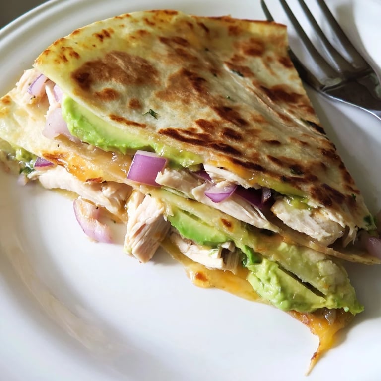 Pin it My neighbor showed up one afternoon with a bag of avocados from her tree, and I had leftover chicken in the fridge that needed using. I wasn't planning anything fancy, just something quick before the kids got home from practice. I folded everything into tortillas, pressed them into a hot pan, and the smell alone made everyone appear in the kitchen before I even finished cooking. That's how this quesadilla became our weeknight answer to everything.