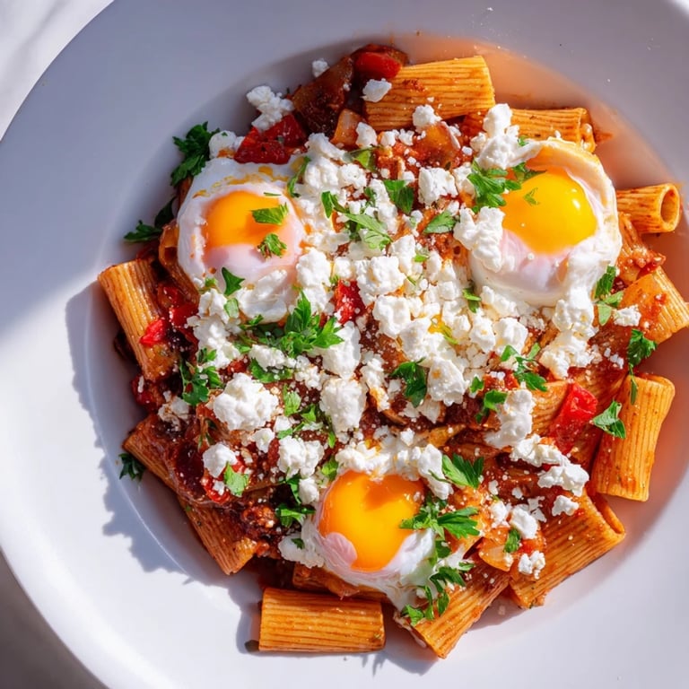 Pin it There's something magical about the moment when a completely unexpected dish just works. I was standing in my kitchen on a rainy Tuesday, staring at a box of penne and a can of tomatoes, when I suddenly remembered the warm, spiced shakshuka I'd eaten at a tiny café in Istanbul. What if I combined them? The result was this glorious, baked pasta with its runny-yolked eggs—a dish that's become my answer to every "what should I cook tonight" question.