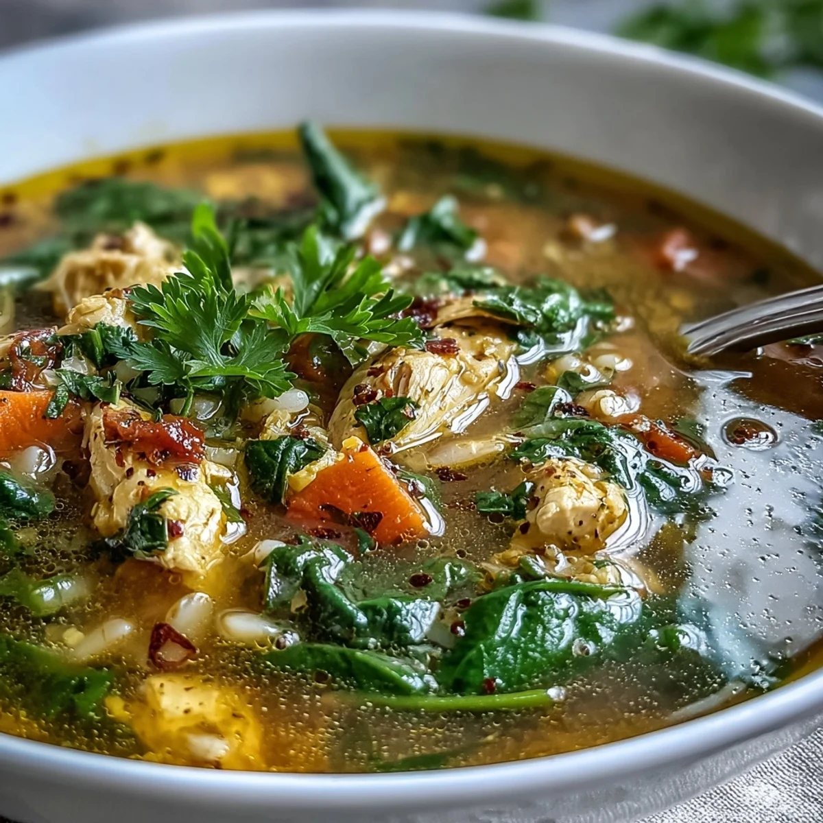 Pin it The secret to this soup's depth lies in the combination of cumin, coriander, and black pepper, which work together to enhance the earthy notes of the turmeric. As the pearl barley simmers in the low-sodium chicken broth, it absorbs all the wonderful flavors, while the addition of fresh baby spinach and a squeeze of lemon juice at the end provides a bright, fresh finish.